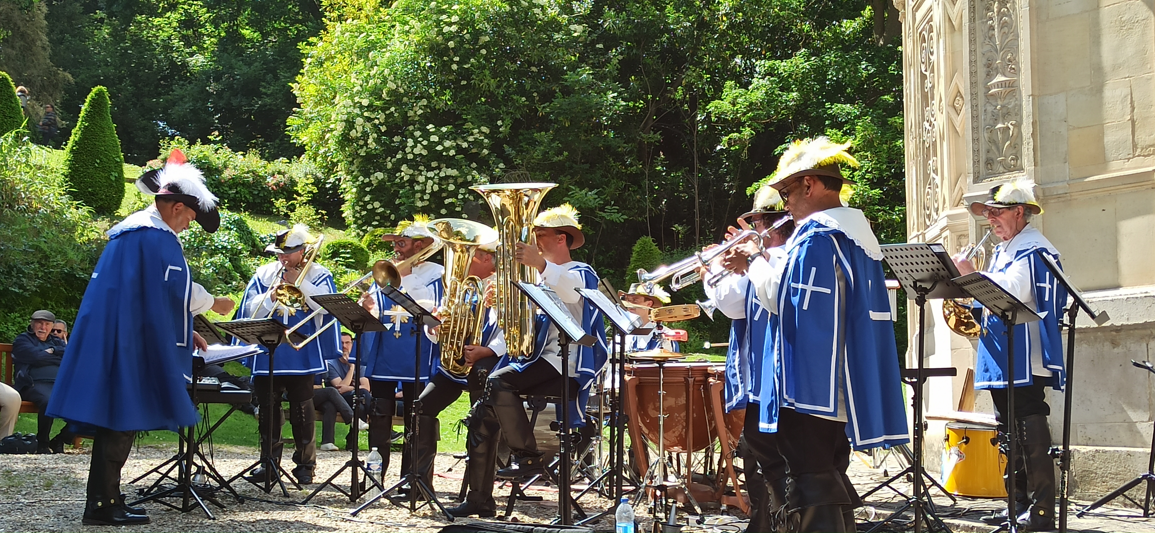 Accueil dans le parc de Monte-Cristo de l’ensemble de cuivres et percussions de l’Anjou pour un spectacle musical et théâtral : « Les aventures imaginaires de D’Artagnan ».